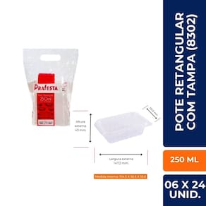Pote Retangular 250Ml. C/ Tampa C/6X24 Un. (Prafesta)