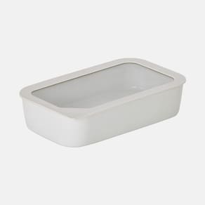 Pote Retangular de cerâmica - Tampa de Vidro - 1500ml - FIKA