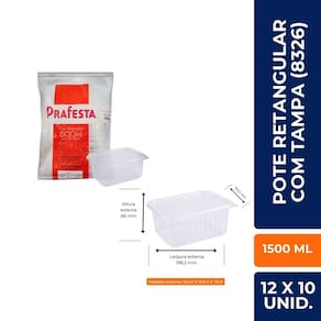 Pote Retangular Marmita Fitness 1500 Ml C/ Tampa C/ 12x10 Un. (PRAFESTA)