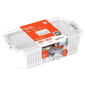 - Capacidade de 2,57 litros – perfeito para frutas, legumes, verduras e mantimentos. - Tampa hermética que garante vedação total, conservando por mais tempo. - Acompanha cesto de drenagem, ideal para lavar e escorrer os alimentos antes de armazenar. - Design slim, moderno e super prático para caber na geladeira ou na despensa. - Produto resistente, fabricado em plástico de alta qualidade pela Paramount Plásticos.