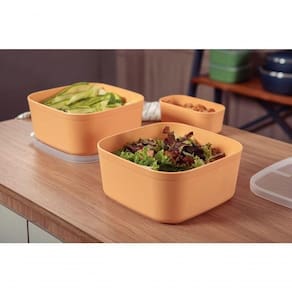 Modo de Uso: Lave bem as peças e seque-as. Para limpeza, use somente esponja macia e detergente neutro. Não utilize materiais abrasivos. Com o uso, é normal que apareçam riscos no interior dos potes. Enquanto estiver congelado, evite impactos. Não coloque o pote em direto com superfícies quentes. Ao levar ao micro-ondas, deixe a tampa do pote entreaberta. Recomenda-se mexer o alimento durante o aquecimento no micro-ondas. Nunca utilize a função grill do micro-ondas. Evite aquecer alimentos como chocolates, caramelos, açúcar, e alimentos gordurosos, pois podem atingir altas temperaturas e danificar seu pote. Não utilize o pote para fazer pipocas no microondas pois irá danificá-lo. Molhos com forte pigmentação, como de tomate, açafrão e curry podem manchar o interior das peças. Guarde os potes separados das tampas para evitar odores. Para descarte dos produtos e embalagem siga as orientações de reciclagem vigentes.