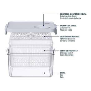 Para quem precisa armazenar grandes volumes com praticidade e cuidado, o pote organizador de geladeira Tramontina Organizzare com controle de umidade 6,2 L é a escolha certa. Com espaço de sobra e tampa com ventilação ajustável, ele ajuda a preservar frutas, legumes, carnes e laticínios por mais tempo, mantendo sabor, frescor e textura. O cesto de drenagem evita o direto com a umidade, enquanto o divisor removível permite organizar os alimentos de forma versátil. O controle de data giratório facilita o acompanhamento do tempo de conservação. Com design inteligente e eficiente, esse pote é um aliado indispensável para quem busca otimizar o espaço da geladeira e simplificar a rotina na cozinha.
