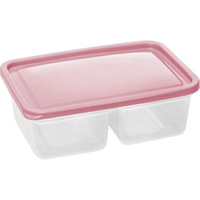 Pote Transparente com 2 Divisória Com Tampa na cor Rosa, Cinza ou Azul - 1100ML - Retangular multiuso Divisao Quadrada *** 01 Peça *** PANAMI