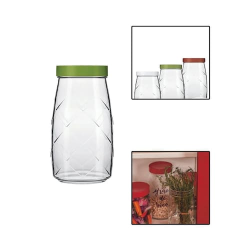 Pote de vidro com capacidade de 2litros e tampa plástica, ideal para armazenar alimentos de forma prática e segura.