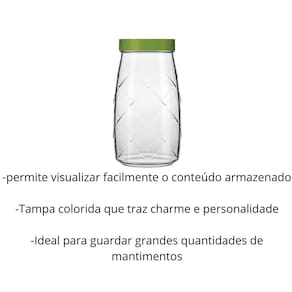 Pote de vidro com capacidade de 2litros e tampa plástica, ideal para armazenar alimentos de forma prática e segura.