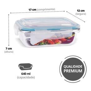 Esse pote de vidro temperado de 640ml hermético com super travas foi pensado especialmente para facilitar o seu dia a dia na cozinha e trazer mais sofisticação ao seu lar.Produzido em vidro temperado, pode ser levado ao:- forno micro-ondas.- freezer.- geladeira.- máquina de lavar louças.- à mesa.Os potes refratários de vidro hermético possuem tampas resistentes com fechamento 100% hermético, suportam temperaturas de até 300 e permitem uma limpeza fácil e mais rápida, deixando o pote mais higiênico, sem qualquer vestígio de cheiro ou sujeira.Pote de 640ml adequados às várias necessidades do dia a dia como guardar alimentos secos, frutas e até líquidos, molhos e sopas, pois o isolamento é garantido.Mantenha seus alimentos armazenados de forma adequada e segura com os potes de vidro hermético. Sua tampa permite um alto nível de vedação mantendo frescor, cor e sabor dos alimentos.Aliando qualidade, praticidade e preço justo, apresentamos o pote de vidro hermético. O pote ideal para o seu dia-a-dia.Diferenciais----- vai ao forno convencional sem a tampa , forno elétrico sem a tampa , microondas sem a tampa e freezer.- evita que o cheiro se espalhe devido a sua super vedação.- anel de silicone removível e lavável.- possui 4 super travas.- mantém os alimentos frescos por mais tempo.- suporta uma variação térmica de até 300c não é indicado dar choque térmico .- tampa livre de bpa bisfenol a , ou seja, não é tóxica.- fácil de limpar e higienizar, pois pode tirar o anel de silicone e vedação para limpeza.- sem risco de vazamento devido a sua super vedação.- super resistente, vidro temperado.Fique atento à imitações baratas, só os potes aliam qualidade com todos os diferenciais mencionados ; ideal para:----- utilizar como marmita no dia-a-dia.- armazenar os alimentos na geladeira.- servir à mesa com aperitivos.- aquecer os alimentos no micro-ondas.- guardar os alimento no freezer.- presentear a mãe ou a sogra...rs.Ficha técnica----modelo: pote de vidro retangularmaterial: vidro temperado borosilicato, tampa de plástico e anel vedação de siliconeitem incluso: 1 pote hermético com tampa modelo: pote de vidro retangulargarantia: 30 dias contra defeito de fabricaçãoNão realizar choque térmico tirar do forno ou local quente para local frio ou vice e versa medidas----capacidade - 640mlpeso - 495gcomprimento - 17cmlargura - 12cmaltura - 6cm
