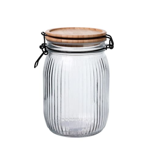 Pote Vidro Hermético Versalhes Tampa Bambu Trava Mais 1200ml