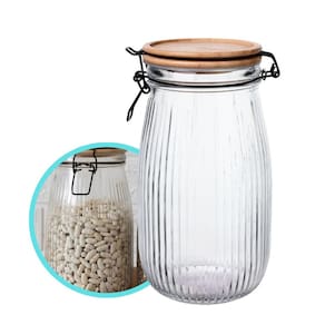 Pote Vidro Hermético Versalhes Tampa Bambu Trava Mais 1700ml