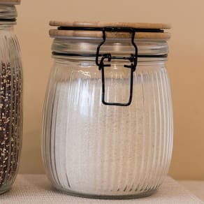 Design Versalhes: O elegante padrão listrado do vidro confere um toque refinado e exclusivo ao pote, elevando o nível da decoração da sua cozinha.