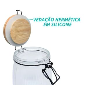 Pote Vidro Hermético Versalhes Tampa Bambu Trava Mais 800ml
