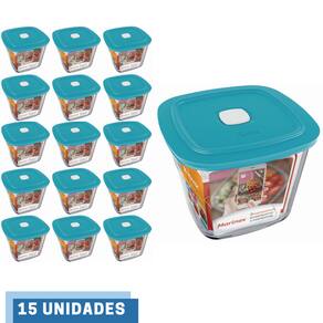 Pote De Vidro Quadrado Alto Com Tampa Marinex 1L 15 unidades