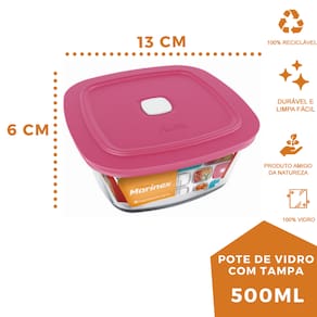 2 unidades Pote De Vidro Quadrado Com Tampa 500ml Marinex