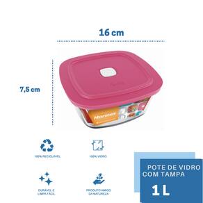 Pote De Vidro Quadrado Com Tampa Marinex 1L 1unidade