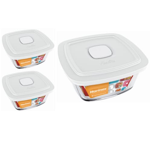 2 Potes De Vidro Marinex Facilita Quadrado Com Tampa 2 Litros