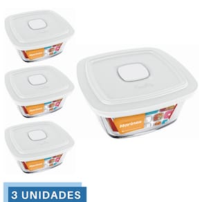 3 Potes De Vidro Marinex Facilita Quadrado Com Tampa 2 Litros