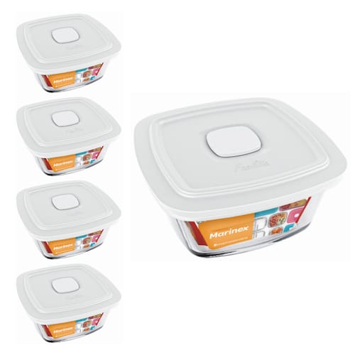 4 Potes De Vidro Marinex Facilita Quadrado Com Tampa 2 Litros