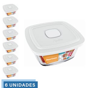 6 Potes De Vidro Marinex Facilita Quadrado Com Tampa 2 Litros