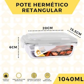 Pote de Vidro com Tampa Hermética Retangular - 1040ml