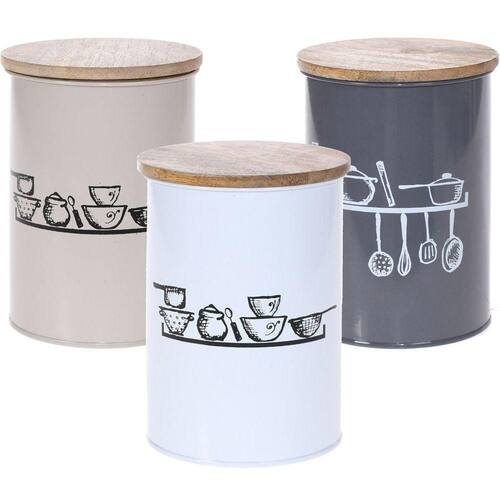 Pote Vintage Aço Esmaltado Tampa Madeira Grande 900ml Cinza Pote Vintage Aço Esmaltado Tampa Madeira Grande 900ml Cinza - Pote Vintage Aço Esmaltado Tampa Madeira: