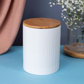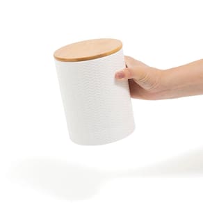 Esse é o pote de dolomita médio 1,2L da OIKOS. Versátil: ele vai bem em todos os cantos da casa: na cozinha, no banheiro, na sala, no quarto, dentro dos armários, nas prateleiras e onde mais você quiser. Bem prático: ótimo para organizar a cozinha, armazenando mantimentos, ervas e temperos. ou então para guardar objetos diversos como acessórios, fios, algodão, itens de escritório e muito mais! Design decorativo: funcional e bonito, esse pote transita muito bem entre os diferentes cômodos da casa, espalhando seu charme por onde quer que vá. Tampa de bambu: o bambu não gosta de umidade ou contato com água por muito tempo, é bom guardar sempre em local seco e arejado. Detalhe do material: a dolomita é um material resistente e durável. com acabamento lustroso, ele combina com vários estilos de decoração, trazendo uma bossa a mais para o ambiente.Dimensões do produto:Altura: 16CmLargura: 12Cm