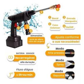 Potência sem amarras: Lavadora Alta Pressão Lava Jato Recarregável Sem Fio Com a sua lavadora de alta pressão você pode deixar brilhante qualquer material ou superfície. Seu pulverizador de água de alta pressão é entre dez e cinquenta vezes mais poderoso do que as mangueiras de jardim, tornando o processo de limpeza mais eficaz e fácil