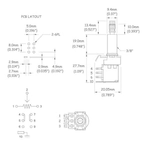 Potenciômetros para instrumentos, tipo Log Taper Push-Push, ponta serrilhada com 24 dentes e eixo bipartido, DPDT, unidade, Spirit Guitar Parts - VPP319-B500K-I. Resistores tipo A, B, C, diâmetro de 3/8, 2 porcas e 1 arruela inclusas.