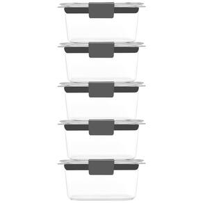 Os recipientes de zenamento de alimentos Rubbermaid Brilliance 100 por cento à prova de vazamentos apresentam plástico Tritan transparente e sem BPA que oferece uma clareza de 360 graus e ajuda a manter os alimentos frescos e s Os recipientes para alimentos são transparentes como o vidro, para que você sempre possa ver o que está dentro, mas são leves e fáceis de transportar O material resistente a manchas e odores mantém o recipiente de plástico com aparência de Os recipientes de plástico Brilliance possuem aberturas sob as travas que permitem o reaquecimento de micro ondas resistente a respingos com a tampa Os recipientes sem BPA empilham se perfeitamente uns aos outros para economizar espaço e ficar organizados na geladeira ou armário, e são s para a máquina de lavar louça e freezer Vida O conjunto inclui cinco recipientes 300 mL com tampas, para um total de 10 peças Marca: Não Informado
