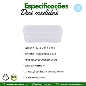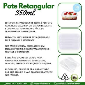 Na loja oficial embanet, apresentamos o pote retangular com lacre 350ml, projetado para simplificar sua rotina, preservar seus alimentos tornando sua vida mais prática.