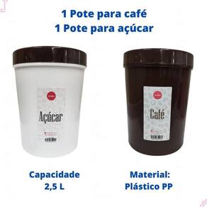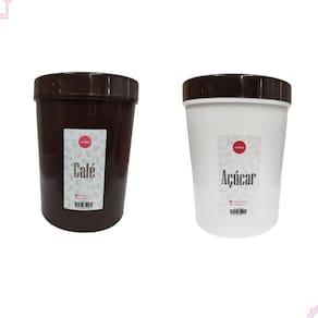 Esse kit é composto por 2 potes, um para café e outro para açúcar, ambos com capacidade de 2,5 litros. Assim, você terá espaço suficiente para armazenar esses dois ingredientes essenciais no preparo das suas bebidas preferidas. Ean: 7792345501368