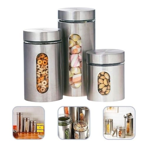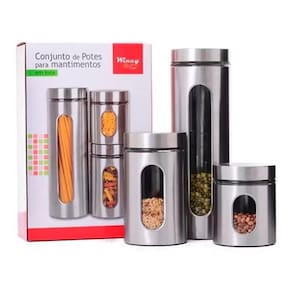 Buscando 03 Itens elegantes e modernos para compor sua cozinha Com um design minimalista e imponente o Conjunto de Potes para Mantimentos em aço inox é ideal Para compor sua cozinha pois combina com qualquer ambiente, do rústico ao moderno fazendo com que essas peças sejam de extrema versatilidade no quesito decoração.