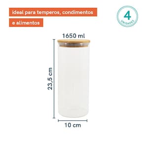 04 POTES PARA MANTIMENTOS DE 1650ML COM TAMPA DE BAMBU – OIKOS Altura: 23,5 cm Diâmetro: 10 cm