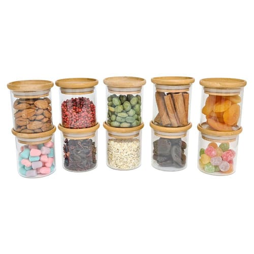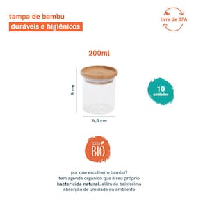 10 POTES DE MANTIMENTOS EMPILHÁVEL COM TAMPA DE BAMBU 200ML - OIKOS Altura: 7,8 cm Diâmetro: 6 cm