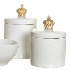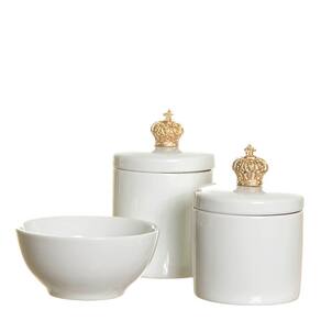 Para deixar seu bebê sempre cheirosinho este kit é perfeito Fabricados com materiais de altíssima qualidade e resistência, esse kit foi desenvolvido para facilitar o dia a dia das mamães, que precisam da praticidade de ter tudo devidamente armazenado e pronto para uso Dados Técnicos Kit higiene com porcelanas brancas decoradas com coroas douradas. Itens Inclusos no Kit 01 Pote grande em porcelana branca com tampa 01 Pote pequeno em porcelana branca com tampa 01 Molhadeira em porcelana branca Medidas Pote Grande: 9 cm de diâmetro e 10 cm de altura Pote Pequeno: 9 cm de diâmetro e 8,5 cm de altura Molhadeira: 11,5 cm de diâmetro e 5,5 cm de altura Ean: 7898659188735