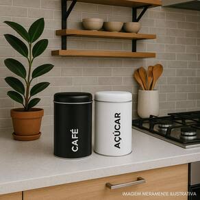 Transforme a organização da sua cozinha com estilo e sofisticação O kit de porta-mantimentos em metal, com design moderno e acabamento fosco, é perfeito para armazenar com praticidade e charme seus itens do dia a dia. Cada pote vem identificado com escrita clean e elegante, garantindo rapidez na hora de encontrar o que precisa e trazendo harmonia para a decoração da sua bancada ou prateleira. Além da estética minimalista que combina com cozinhas modernas, os potes possuem excelente vedação e durabilidade, mantendo café, açúcar e outros ingredientes protegidos e bem conservados. Um toque funcional que eleva o visual do seu ambiente. Especificações Técnicas Material: Metal resistente Medidas: 10 cm largura x 10 cm profundidade x 15,5 cm altura Formato: Cilíndrico Vedação: Tampa de encaixe firme Capacidade aproximada: Ideal para armazenar mantimentos como café e açúcar Utilização recomendada: Organização e conservação de alimentos secos Estilo: Moderno e minimalista Limpeza: Fácil de higienizar com pano úmido e sabão neutro Imagens ilustrativas.