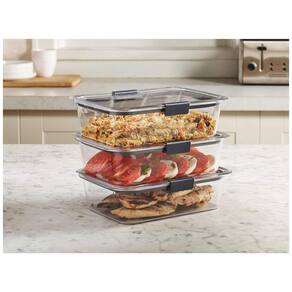 Os recipientes de zenamento de alimentos Rubbermaid Brilliance 100 à prova de vazamentos apresentam tampas e bases Tritan sem BPA com clareza de 360 graus vedação hermética e travas seguras evitam derramamentos e vazamentos e ajudam a manter os alimentos frescos e s Perfeito para uma variedade de ocasiões e eventos, como almoços, lanches, preparação de refeições, festas, feriados e muito mais Os recipientes transparentes são transparentes como o vidro para que você sempre possa ver o que está dentro, mas são leves e fáceis de transportar o material resistente a manchas mantém o recipiente de plástico com aparência de e resiste a odores Ventiladores embutidos sob as travas permitem micro ondas resistente a respingos com a tampa Os recipientes empilham se perfeitamente uns aos outros para economizar espaço e ficar organizados na despensa ou geladeira É para a máquina de lavar louça, microondas e freezer garantia de vida O pacote inclui três recipientes de plástico de 2.3 L, mais tampas, para um total de 6 peças Marca: Não Informado