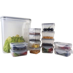 Contém: 13 Potes Herméticos 1 de 5900ml - 24 x 12,6 x 28,5cm 4 de 400ml - 10,5 x 10,5 x 6cm 4 de 240ml - 12 x 8,2 x 4,5cm 4 de 189ml - 8,2 x 8,2 x 5cm