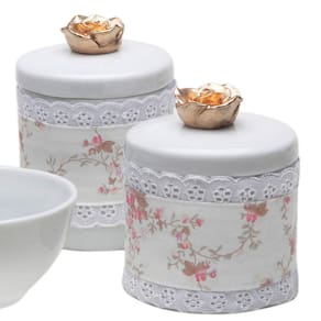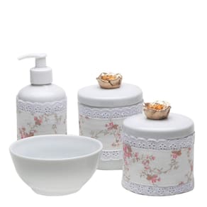 Para deixar seu bebê sempre cheirosinho este kit é perfeito Fabricados com materiais de altíssima qualidade e resistência, esse kit foi desenvolvido para facilitar o dia a dia das mamães, que precisam da praticidade de ter tudo devidamente armazenado e pronto para uso Dados TécnicosKit higiene com porcelanas brancas decoradas com florzinha dourada e capas de tecido. Itens Inclusos no Kit01 Pote grande em porcelana branca com tampa01 Pote pequeno em porcelana branca com tampa 01 Molhadeira em porcelana branca01 Porta ÁlcoolGel/ Sabonete Líquido em porcelana branca01 Conjunto de 3 capas em tecido e tiras aderentes para pote grande, pote pequeno e porta álcoolgel MedidasPote Grande: 9 cm de diâmetro e 10 cm de alturaPote Pequeno: 9 cm de diâmetro e 8,5 cm de alturaMolhadeira: 11,5 cm de diâmetro e 5,5 cm de alturaPorta ÁlcoolGel/Sabonete Liquido: 6,5 cm de diâmetro e 15 cm de altura
