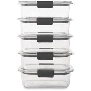 Os recipientes de zenamento de alimentos Rubbermaid Brilliance 100 à prova de vazamentos apresentam tampas e bases Tritan sem BPA com clareza de 360 graus vedação hermética e travas seguras evitam derramamentos e vazamentos e ajudam a manter os alimentos frescos e s Perfeito para uma variedade de ocasiões e eventos, como almoços, lanches, preparação de refeições, festas, feriados e muito mais Os recipientes transparentes são transparentes como o vidro para que você sempre possa ver o que está dentro, mas são leves e fáceis de transportar o material resistente a manchas mantém o recipiente de plástico com aparência de e resiste a odores Ventiladores embutidos sob as travas permitem micro ondas resistente a respingos com a tampa Os recipientes empilham se perfeitamente uns aos outros para economizar espaço e ficar organizados na despensa ou geladeira É para a máquina de lavar louça, microondas e freezer g O pacote inclui cinco recipientes de plástico de 800 mL, mais tampas, para um total de 10 peças Marca: Não Informado