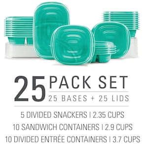 Os recipientes de zenamento de alimentos divididos da Rubbermaid são projetados para uma variedade de alimentos, incluindo entradas, sanduíches, acompanhamentos e lanches Recipientes de lanches divididos e recipientes de entrada ajudam a manter os alimentos separados, por isso são recipientes de preparação de refeições perfeitos Esses recipientes Rubbermaid apresentam um selo QuikClik a tampa se encaixa de forma audível na base, para que você saiba que está bem selada As bases coloridas facilitam a localização dos recipientes em uma geladeira lotada tampas claras permitem que você veja o que está dentro A tampa vazada permite que os recipientes sejam facilmente empilhados na geladeira e no armário Marca: Não Informado