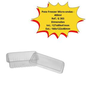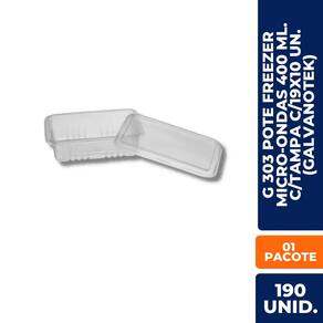 Modelo: G 303 Marca: Galvanotek Capacidade: 400 ml Quantidade: 60 unidades Com tampa: Sim (encaixe firme) Material: Plástico resistente a altas e baixas temperaturas Cor: Transparente Formato: Redondo Uso: Marmita, delivery, congelamento, armazenamento de comida pronta Reutilizável: Sim Temperatura suportada: De -10°C a +110°C