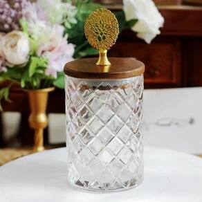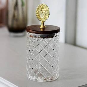 Potiche bomboniere vidro baleiro tampa madeira 13x9 Cor: incolor Confeccionado em vidro lapidado incolor, o potiche bomboniere com tampa em madeira e lindo adereço em metal esbanja elegância. Prático, é ideal para armazenar balas, bombons, goma de mascar, algodão, grãos e muito mais. Com elegantes linhas, este lindo potiche com tampa ainda valoriza a decoração de seu ambiente. Características do produto Material: vidro, madeira e metal Altura total: 13cm Largura total: 9 cm Profundidade: 9 cm Capacidade: 400ml Ref: 167401