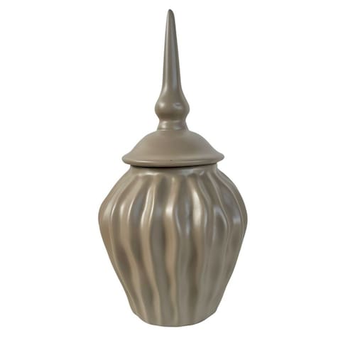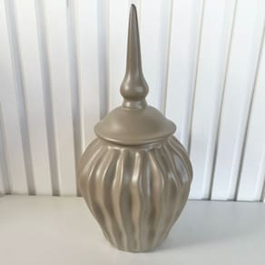 Decoração sala estante rack ornamento potiche de cerâmica onda ondulação cáqui com tampa.