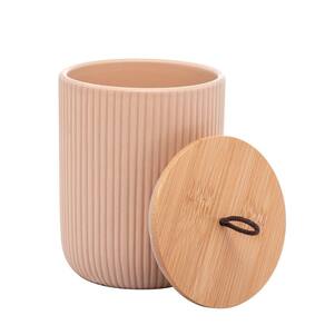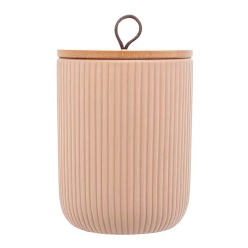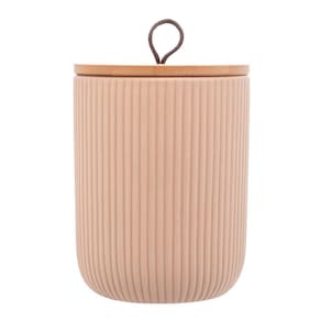 Potiche de Cerâmica com Tampa de Bambu e Pegador de Corda Lines Bege - Lyor
