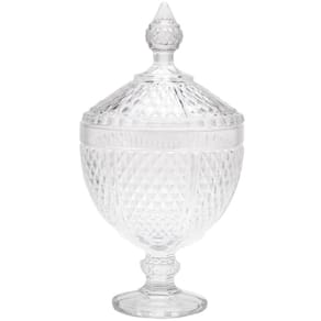 Adorne seu espaço com requinte e sofisticação com o potiche de cristal Perseu da Lyor. Este elegante potiche combina a beleza do cristal com o charme do pé bico de jaca, criando uma peça única que não apenas serve como uma bomboniere prática, mas também como um impressionante pote decorativo. O design do pé bico de jaca confere uma característica única ao potiche, evocando um toque clássico e atemporal. Esta base ornamentada não apenas adiciona estabilidade ao recipiente, mas também eleva o nível estético da peça. Equipado com uma tampa, o potiche não apenas serve como uma peça decorativa, mas também é funcional como uma bomboniere, mantendo doces e pequenos petiscos frescos e acessíveis. Seja como um centro de mesa, destaque em uma estante ou elemento decorativo em aparadores, o potiche Perseu é versátil o suficiente para se integrar a uma variedade de estilos de decoração.