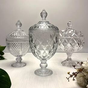 Potiche de Cristal com Pé Bico de Jaca Perseu Lyor Bomboniere com Tampa Pote Decorativo.