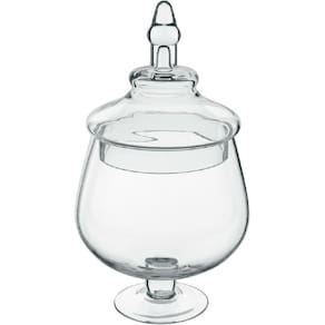 Apresentamos nosso Potiche Bomboniere, o toque final encantador para qualquer ambiente. Este potiche não apenas adiciona um toque de elegância à sua decoração, mas também é uma solução prática para armazenar e exibir doces, chocolates e outras delícias. Feito com vidro de alta qualidade e detalhes intrincados, é uma peça que atrai os olhares e encanta os sentidos. Coloque-o em sua mesa de centro, aparador ou prateleira para adicionar um toque de sofisticação e um ponto focal visualmente atraente ao seu espaço. Seja para uso pessoal ou como presente elegante, nosso Potiche Bomboniere é a escolha perfeita para elevar o charme da sua casa.