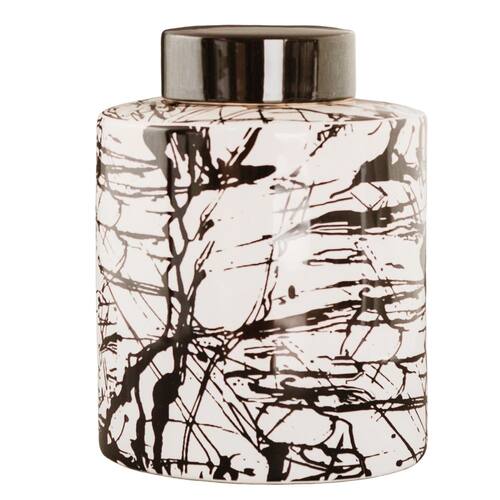 Potiche Decorativo Branco/Preto 26cm Verdici