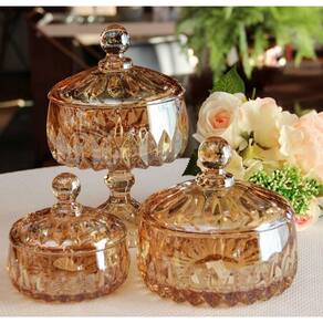 Potiche Em Cristal Louise 14x14cm Wolff Âmbar Metalizado -