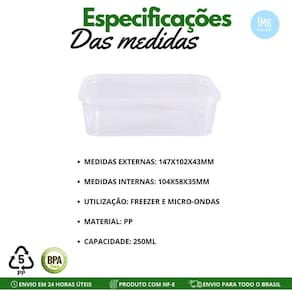 Pote Retangular 250ml tornando sua rotina mais ágil, aumentando a vida útil de alimentos.