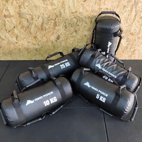 Power Bags RinoForce Material: couro sintético com fitas de nylon de alta resistência para os pegadores. Possuem 2 fechamentos para prevenir qualquer vazamento de areia. Medidas: 20cm x 20cm x 50cm de comprimento.